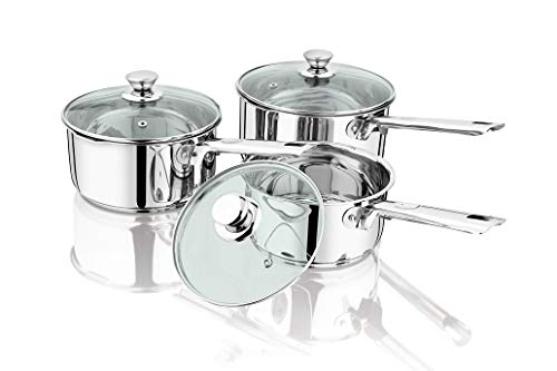 Penguin Home® Nitade Handtag Rostfritt Stål Kastruller Med Glas Lock 3-Bit Set,