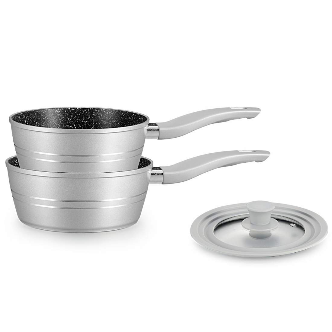 Royalty Line RL-FS2M: 3 delar kastrullset med marmorbeläggning grå