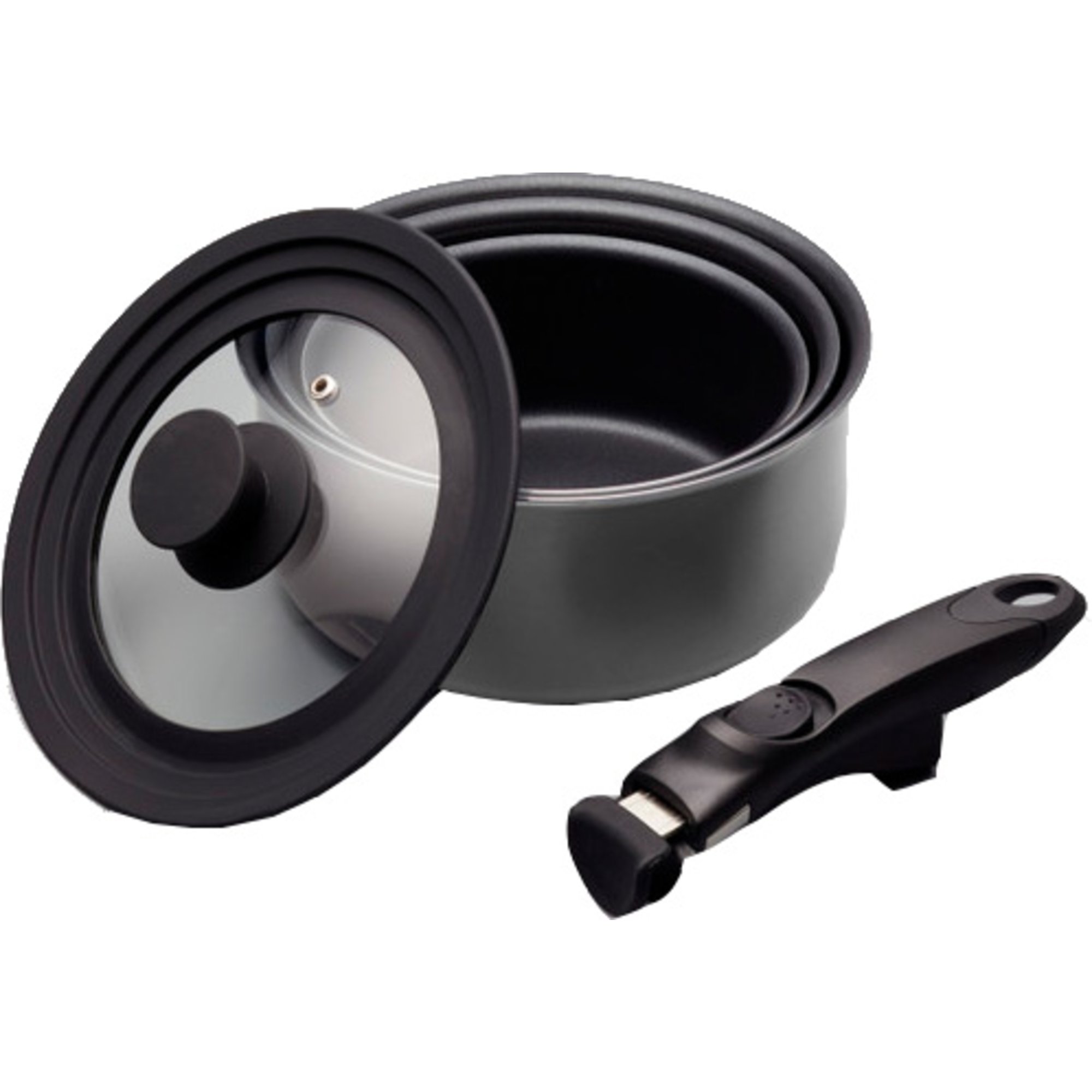 Backen 291108. Kastrullset 16,18,20cm. Rostfritt stål. 8 delar. Induktion. 1 avtagbart handtag. 1 multipositionslock i metall. 3 tätande lock. Diskmaskinsäkert. 5 års garanti.