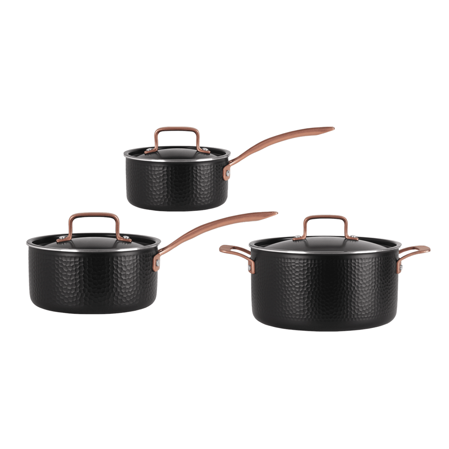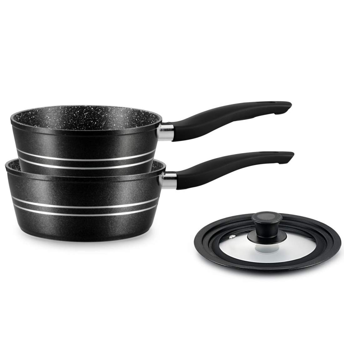 Royalty Line RL-FS2M: 3 delar kastrullset med marmorbeläggning svart