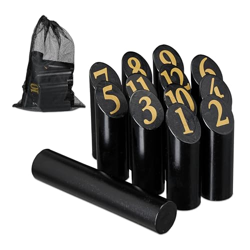 Relaxdays Kubb vikingaspel, finskt kastspel, trä, utomhusspel med siffror, vuxna och barn, väska, svart