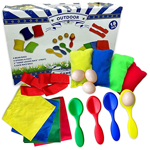 MIJOMA 18-delars lekset utomhusspel för barn, kastspel ägglöpning säckhoppande 3-benracing