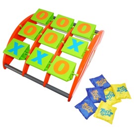Relaxdays 10022795 kastspel 2-i-1, cornhole & Tic Tac Toe, 10 bönväskor, skicklighetsspel, inkl. 1 spelbräda, inomhus och utomhus, flerfärgad, 4 x 29,5 x 51 cm