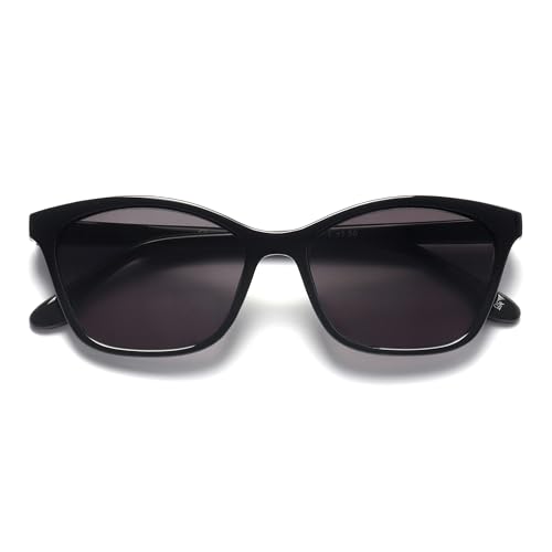 OPULIZE KAT läsglasögon med solglasögon - kattögonbåge - svart - herr och dam - fjädergångjärn - S59-1 - 2,00, Glänsande svart - grå lins, Taglia unica
