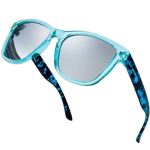 KANASTAL Speglade Polariserade Solglasögon Dam Herr Retro Silver Polarized Sunglasses Men Women UV400 Skydd, Snygga Fyrkantiga Solglasögon för Kvinnor Män för Körning Resor Kat 3- Blå Ram