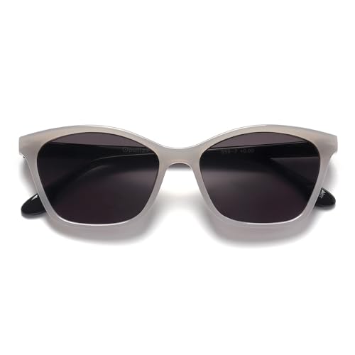 OPULIZE KAT läsglasögon med solglasögon - kattögonbåge - herr dam - fjädergångjärn - S59, Ljusgrå glänsande – grå lins, +3.50 Magnification