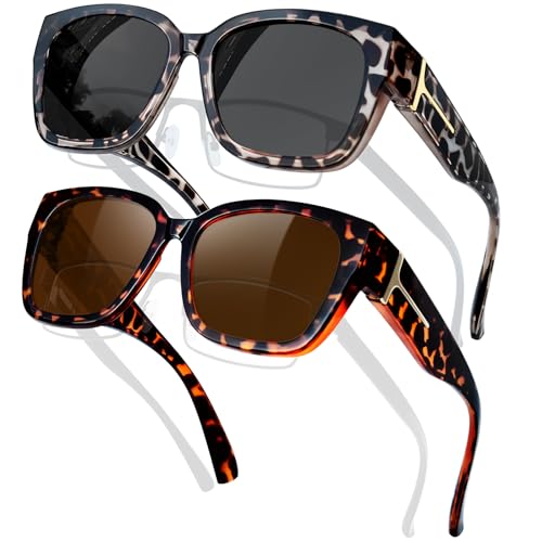 KANASTAL Brun 2-Pack Solglasögon Över Glasögon Dam Polariserade Kat 3 Stora Passform Solglasögon Herr Brown Over Glasses Sunglasses Women UV400-skydd Fiske Körning - Svart och Tortoiseshell