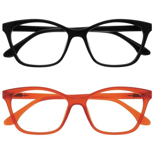OPULIZE KAT läsglasögon - set om 2 - elegant kattögonram - svart och orange - herr och dam - fjädergångjärn - RR59-1G - +3,50
