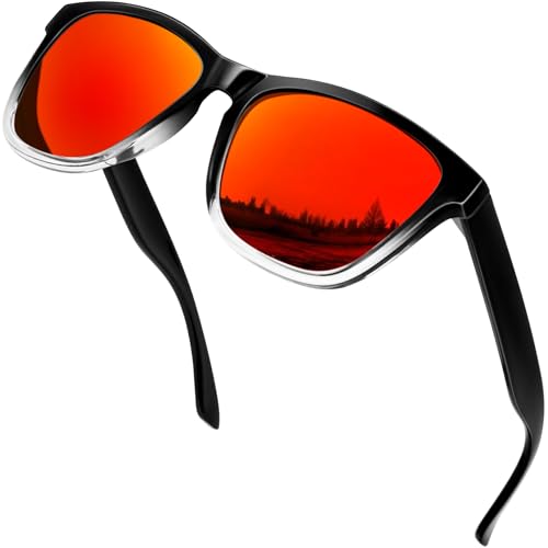 KANASTAL Orange Polariserade Solglasögon Herr Dam Mode Fyrkantiga Solglasögon UV400 Gradient Svart Ram Röd Lins Polarized Sunglasses Men Women Kat 3