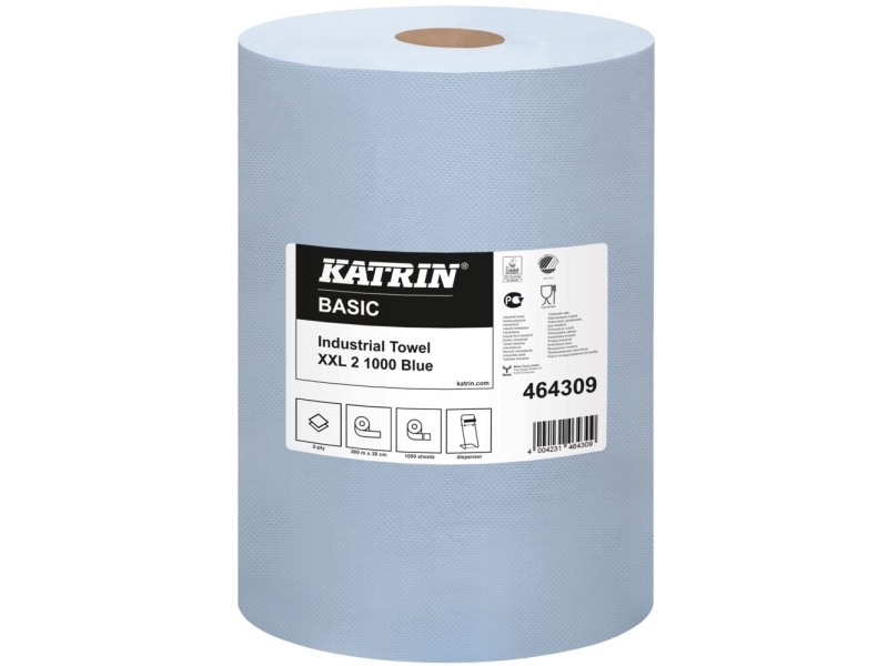 Industrirulle, Verkstadsrulle, Katrin Basic, 2-Lagers, 360M X 38Cm, Ø29cm, Blå, Blandade Fibrer - (2 Rullar Per Kartong)