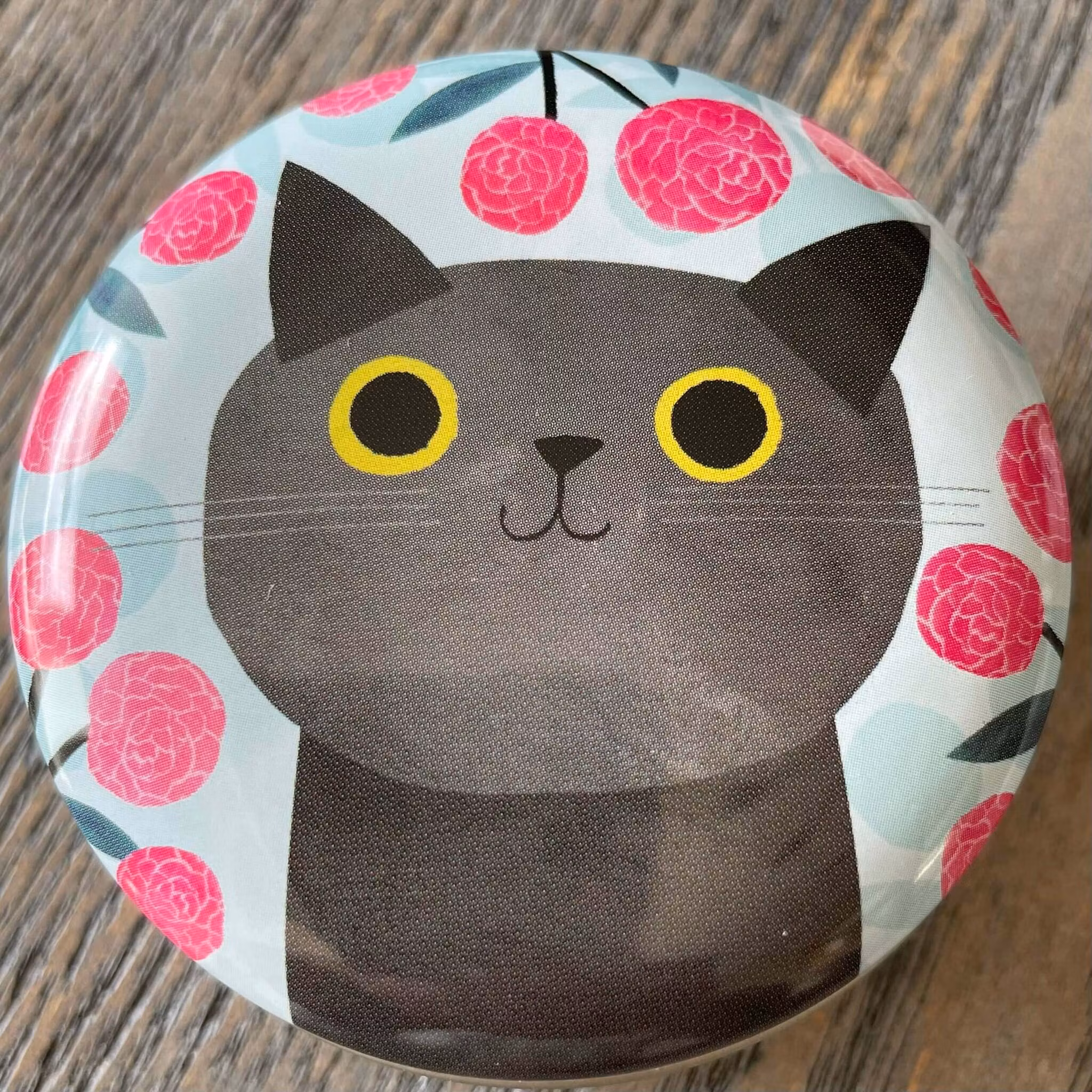 Små runda plåtburkar - Katter (många olika att välja bland): Burk - Svartvit katt gula blommor