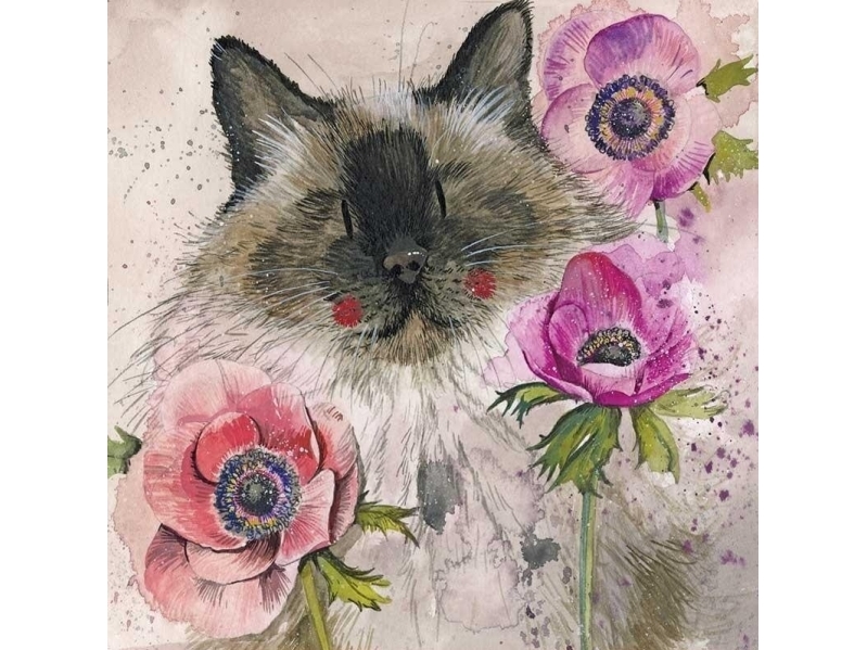 Papyrus tomt katt födelsedagskort - designat av Bella Pilar (katt & blommor)