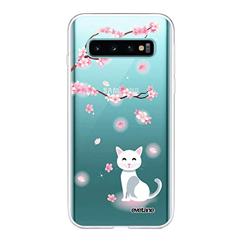 Evetane Samsung Galaxy S10 360 fodral, heltäckande skyddande fodral fram och bak slitstark klar katt och blommor
