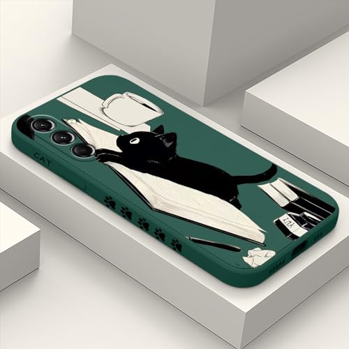 LEECG för Galaxy S24 Plus fodral, blomma, fjäril, söt katt-idéer, designmönster, smalt snyggt droppsäkert skyddande för Samsung Galaxy S24 Plus, telefonskydd 6,7 tum – kattgrön