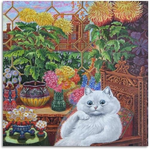 Berömd Louis Wain Cat Poster Och Utskrifter Abstrakt《Katt Med Blomma》Canvasmålning Louis Wain Väggkonst Louis Wain Bild Heminredning 50x50cm Ingen ram