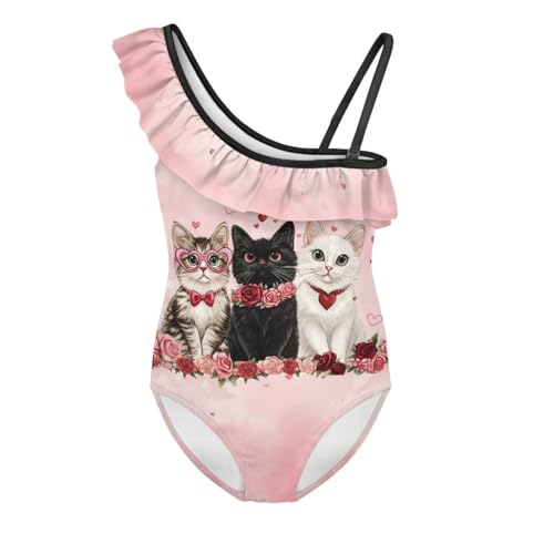 Jndtueit Baddräkt för barn ärmlös veckad badkläder för flickor baddräkt, Katt ros blomma, 5-6 År