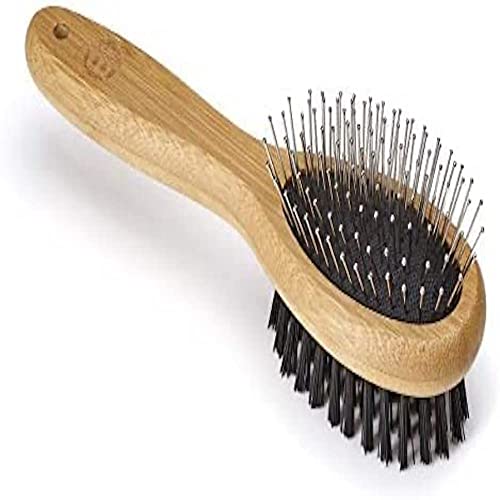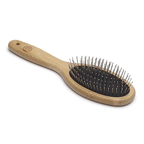 Mikki Bambu boll pin borste, för grooming hund, katt, valp med medium till tjocka hårrockar, handgjord av naturlig hållbar bambu, arge, brun, L