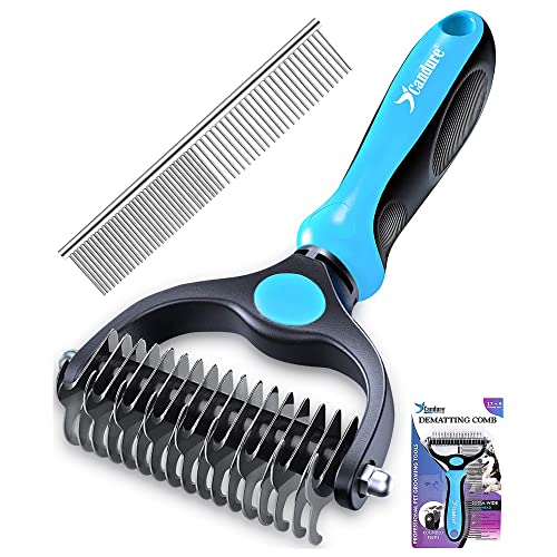 Candure Borste för Hund och Katt, Husdjurs Avmattning Hår Kam och Borstar för Små, Medelstora och Stora Hundar Rostfritt Stål 17+9 Dubbelsidigt Avfallsverktyg Tar Bort Knutar och Trassligt Hår