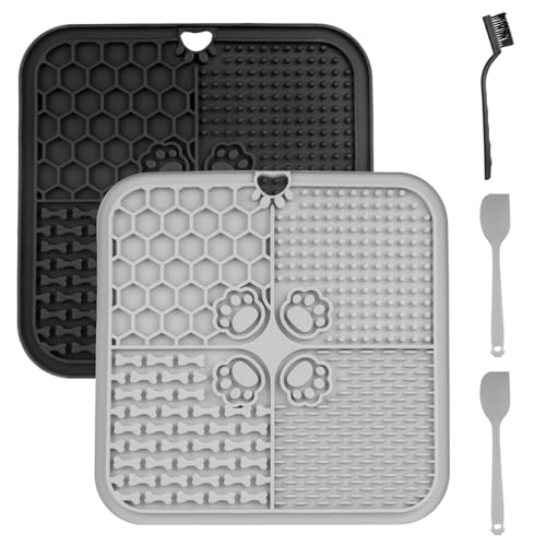 2 st. slickmattor för katt, 20 x 20 cm slickmatta hund slickmatta med sugkoppar, fodermatta för smör, yoghurt hundleksak, för långsam ätning, med spatel/borste