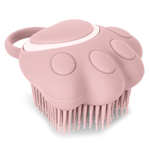 TIESOME Hund katt bad borste kam, silikon valp trimningsborste mjuk husdjur rengöring massage borste schampo dispenser för lugnande massage tvätt (rosa tass-form)