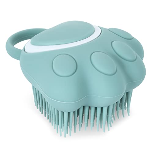 TIESOME Hund katt bad borste kam, silikon valp trimningsborste mjuk husdjur rengöring massage borste schampo dispenser för lugnande massage tvätt (blå tass form)