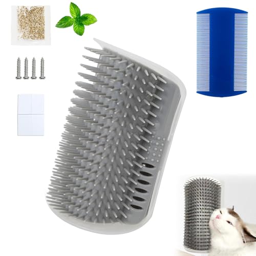 Katt Väggmonterad Hörn Borste, Massage Hörn för Katter, Katter Massage Kam Leksaker, Husdjur Själv Grooming Kam, Mjuk Bil Katt Tandborste, Kattmassagekorn, Grå