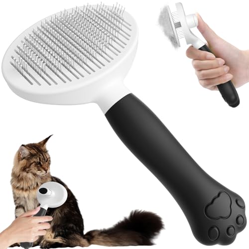 PAKEWAY Katt- och hundborste för kroppsvård, kattunge, borste, självrengörande fällborste för husdjur, massagekammar för katter och hundar med kort, medium och långt hår