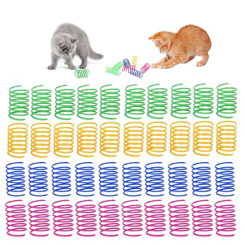 GEFIRE 40 stycken kattfjäderleksaker, interaktiv spiral kattleksak, färgglada kattleksaker, permanent spiral kattleksak, för katt kattunge husdjur nyhet gåva (4 färger)