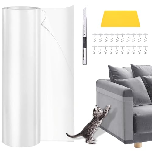 Klösskydd soffa katt, 30 cm x 6 m klösfolie katter självhäftande, anti-repor film för katter och hundar, klösskyddsfolie transparent för möbler soffa soffa vägg dörrskydd