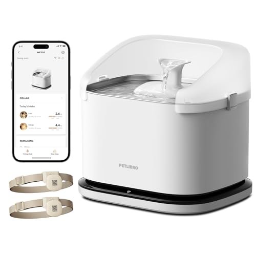PETLIBRO Kattfontän RFID Pet Identification Dryckesfontän för katt, 3L Dockstream Appövervakning Katt som dricker fontän, Flera husdjurs vätskeövervakning, med halsbandsetikett, 2,4Ghz Wi-Fi