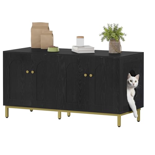 Hzuaneri Katt-toaletthus för 2 Katter, 119 cm Dold Kattlåda, Förvaringsbänk, Lämplig för de Flesta Porlådor, Svart och Guld CB82304A