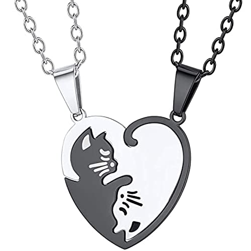 2 stycken katthalsband, kattvänskapskedja, katt par halsband, pussel katt halsband, rostfritt stål vänskap familj halsband, för BFF bästa vänner älskare par presenter, Rostfritt stål