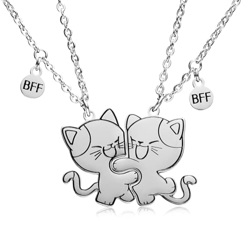 FloralGrace 2 st hängen med bästa vänskap, kattungar pussel katt BFF-halsband 2 gåvor matchande vänskapshalsband för 2 tonåringar pojkar flickor syster