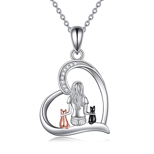 YFN Katthalsband smycken gåvor för kvinnor flickor 925 sterling silver katt hänge halsband gåvor för kattälskare, Standard, Sterlingsilver, Kubisk zirkonia