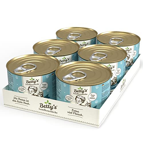 Betty's lanthus kök burk våt mat katt, spannmålsfri, bästa kvalitet, högkvalitativt kött, skonsamt kokt, lämpligt för alla kattraser, rent nötkött med linolja 6 x 400 g