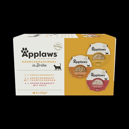 Applaws Premium katt våt mat kruka, kyckling urval i buljong, 60 g kruka (60 g x 32 krukor)