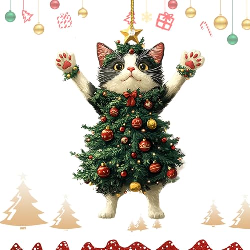 Katt julgransprydnader – 2D akryl bakifrån katt berlock prydnad | bil backbild hänge dekoration, bil och väska katt dekor tillbehör julgransprydnader.