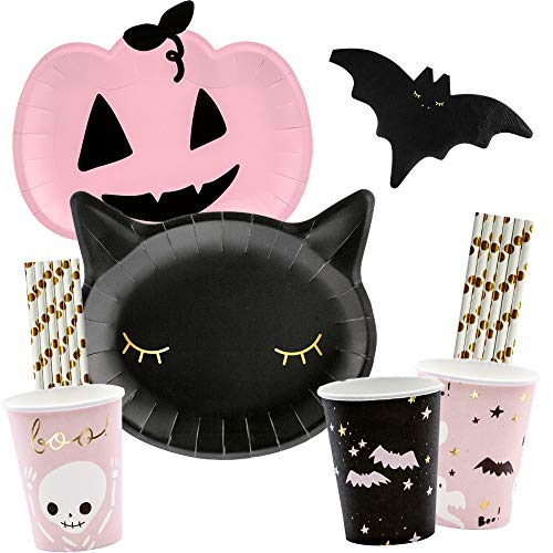 56-delat kalaspaket halloween pumpa katt fladdermus – tallrik mugg servetter sugrör för 12 personer