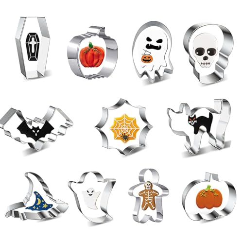 11 stycken halloween kakformar, halloween kakformar, rostfritt stål kakformar, pumpa, sinne, katt, fladdermus, häxhatt.