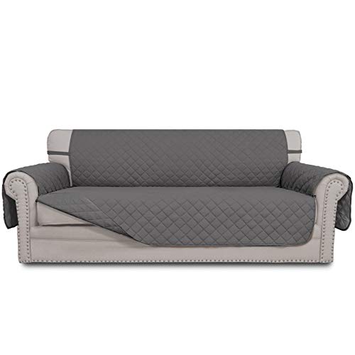 Lättgående 100% vattentätt soffskydd, dubbelt vattentätt soffskydd, stretch jacquard soffskydd, läckagesäkert möbelskydd för barn, husdjur, hund och katt (överdimensionerad soffa, mörkgrå)