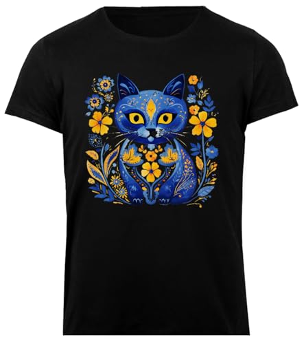 Ukrainsk Katt Blommig Vintage Ukrainsk Flagga Vyshyvanka Basic Bomullssvart T-Shirt För Kvinnor