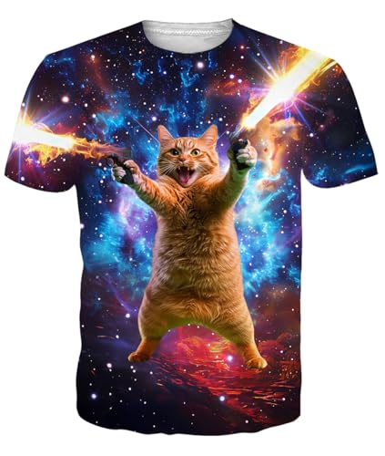 Fanient T-shirt 3D-tryckt T-shirt T-shirt för män och kvinnor, Rolig katt, L