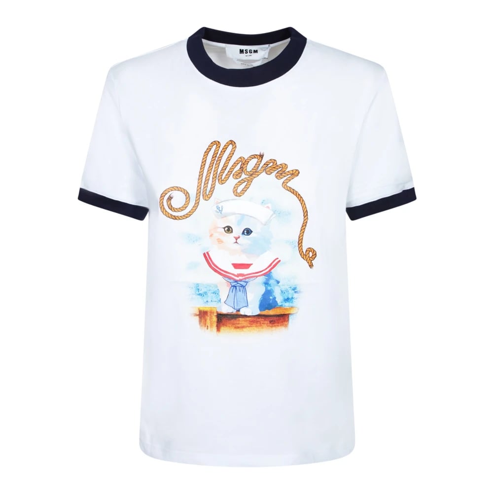 Msgm, Toppar , Dam, L, Bomull, Katt Grafiskt Tryck Kortärmad T-shirt