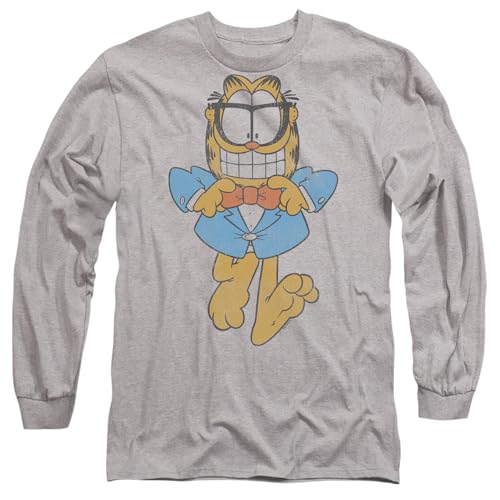 Garfield Dapper Katt Herr Långärmad T-shirt, Atletisk Heather, X-Large, Atletisk Heather, XL