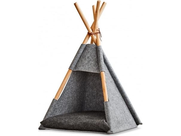Zeller Tält Katt Tipi, Filt / Trä, Grå