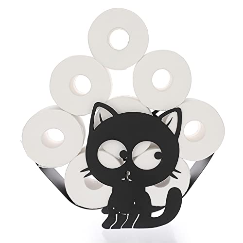 BTSKY Toalettpappershållare i metall – matt svart djurstil toalettpappershållare, fristående och väggmonterad toalettpapper förvaringsbehållare för badrum, hem, kök, toalett (katt)