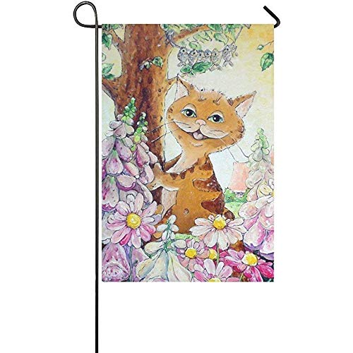 CUKENG - Rolig katt under träd trädgårdsbanderoll, 30 x 45 cm, vårrosa blommönster blomdekoration för bröllop, årsdagar, hem, utomhus, 100% polyester