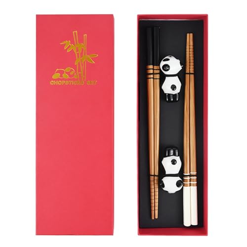 LHOEST 2 par sushi ätpinnar set katt panda, kinesiska japanska koreanska ätpinnar trä, chopsticks för mat diskmaskinssäkra med keramiskt underlägg katt (Panda)