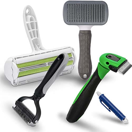 FinoPet Set med 5 olika hundborstar, kattborste, XL luddrulle och fästingtång i ett funktionsset, långhår, korthår, underull, borstare, djurhårborttagare, fästingborttagning, pälsmirakel