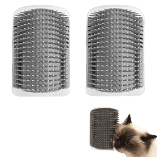 Kattborstkam, massagehörn kattborste, kattborste, vägghörn, självgroomer för katt, 2 stycken katthörn, pälsvårdborste, självgroomer katt för långt hår, korthår, kattmassage (utan
